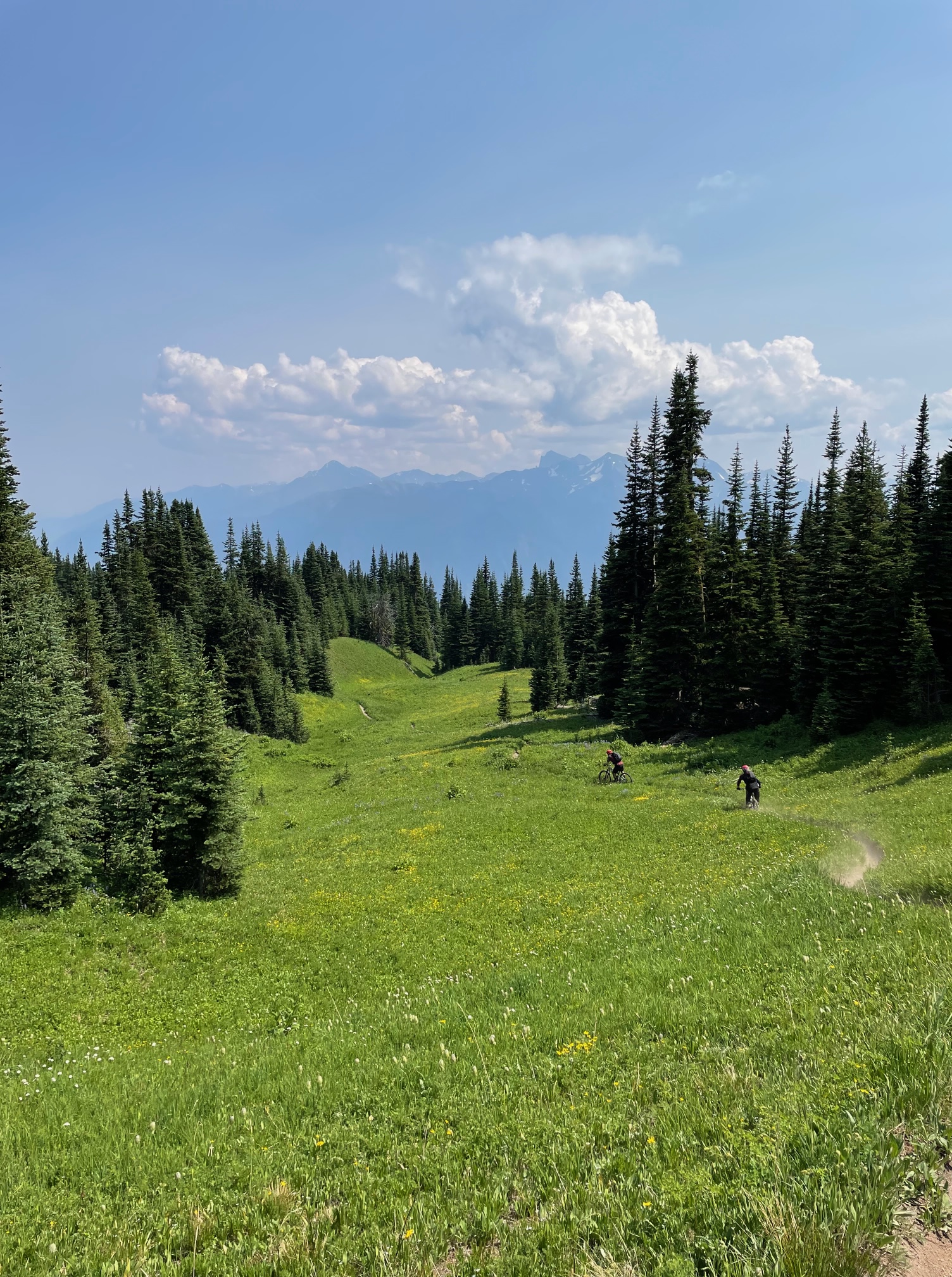 We came to our first meadow after lots of uphill, wet, rooty forest climbs. It was dreamy… we took a quick break, had a snack, then off we went to what we thought was the last climb, then we’d descend.